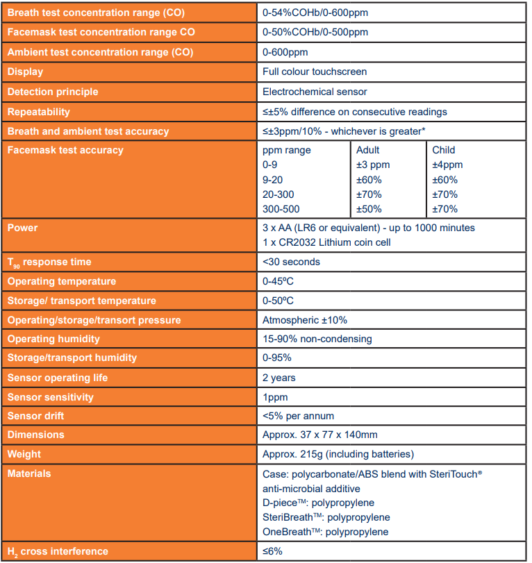Havadaki potansiyel olarak tehlikeli CO seviyeleri konusunda uyarmak için ağızlık, yüz maskesi ve ortam izleme özelliği olmak üzere üç örnekleme modu mevcuttur.